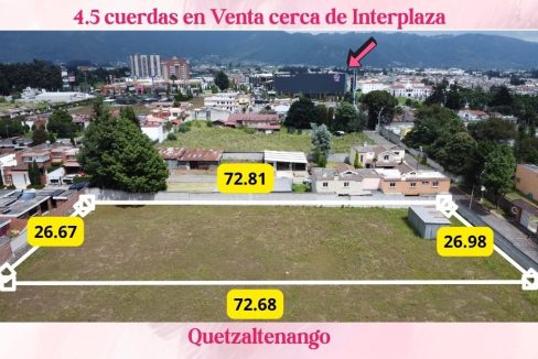 Terreno en Venta 4.5 cuerdas en zona 9 cerca de Interplaza Quetzaltenango.